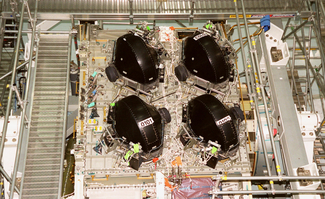 Some other uses for mechanical gyroscopes are ship stabilisers, as, just like with the gyro monorail, they can counter a ship's roll. However, they have fallen out of use to ship stabilising fins due to the produced moment being insufficient if wave height is too high. Even so, ship stabilising fins still use gyroscopes, as gyroscopic control systems are used to detect changes in orientation and then accordingly change the fins’ angle of attack. Another example is in satellites. The International Space Station has 4 gyroscopes spinning at over 6000 revolutions per minute, which are either used to maintain orientation, or are rotated to produce a gyroscopic force to change the attitude of the ISS.