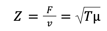 Where Z is the mechanical impedance (kgs-1), F & T is the tension (N), μ is the linear mass density (Kg/m), and 𝑣 is the wave speed (m/s).