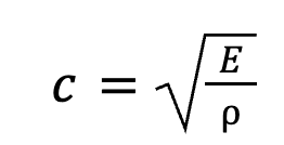 The relationship between the speed of sound (c), Young’s Modulus (E), and density (𝜌) can be found using this equation: